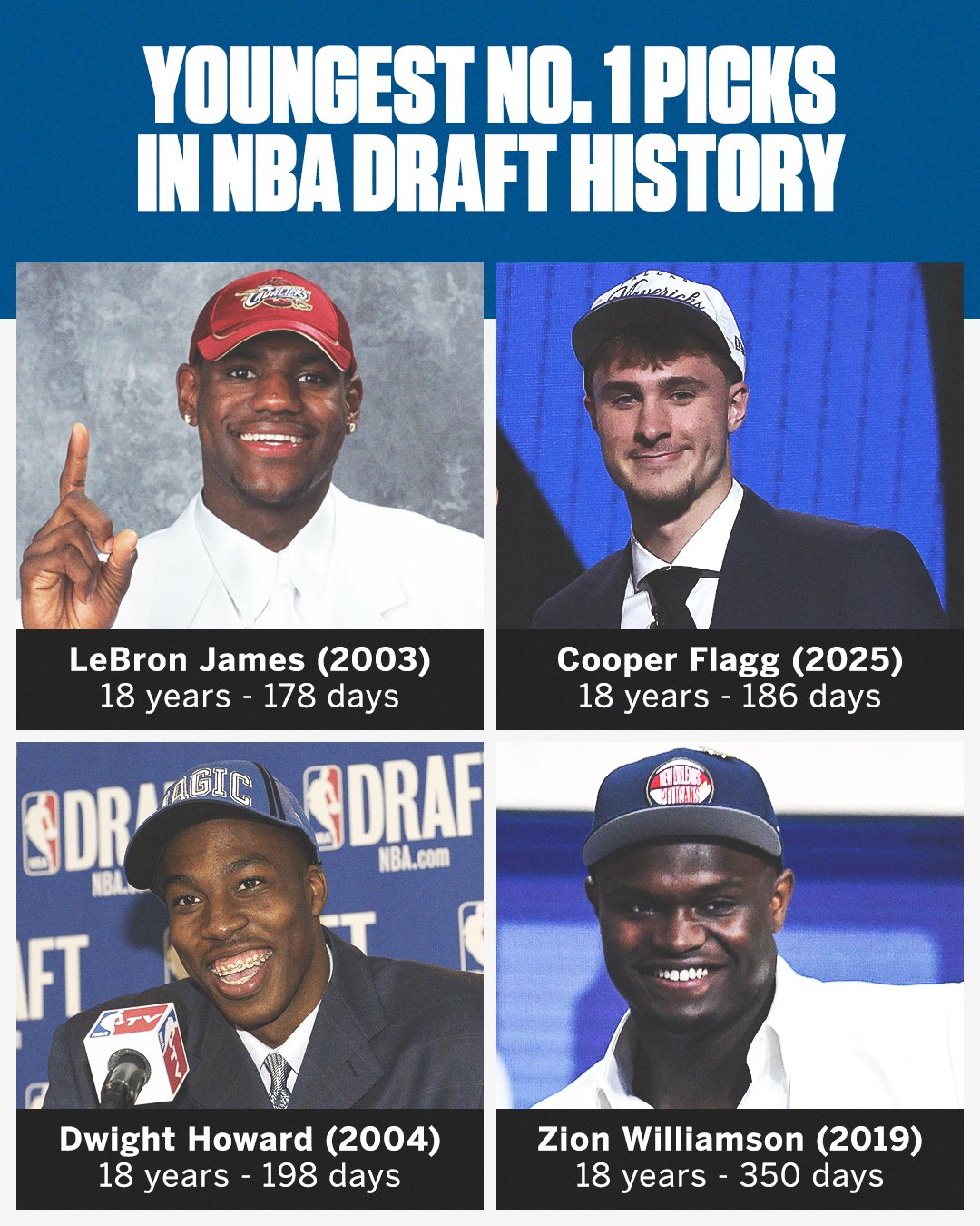 借此,板目目前18歲186天的前歲庫(kù)珀-弗拉格成為了NBA歷史上第二年輕的狀元秀。
