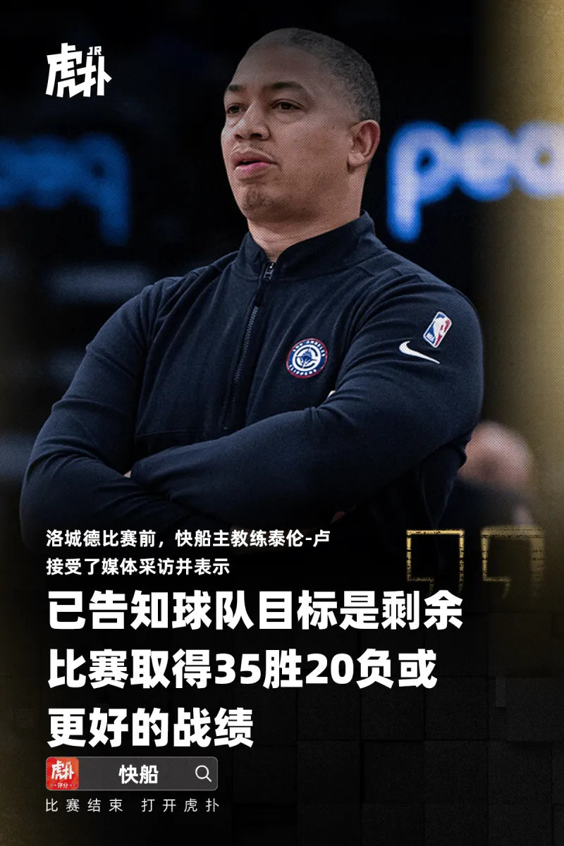 主教練泰倫-盧在賽前的負(fù)或采訪中表示,他已告知球隊(duì),更好他們的板盧標(biāo)剩目標(biāo)是在剩余比賽中以35勝20負(fù)或更好的戰(zhàn)績結(jié)束本賽季。