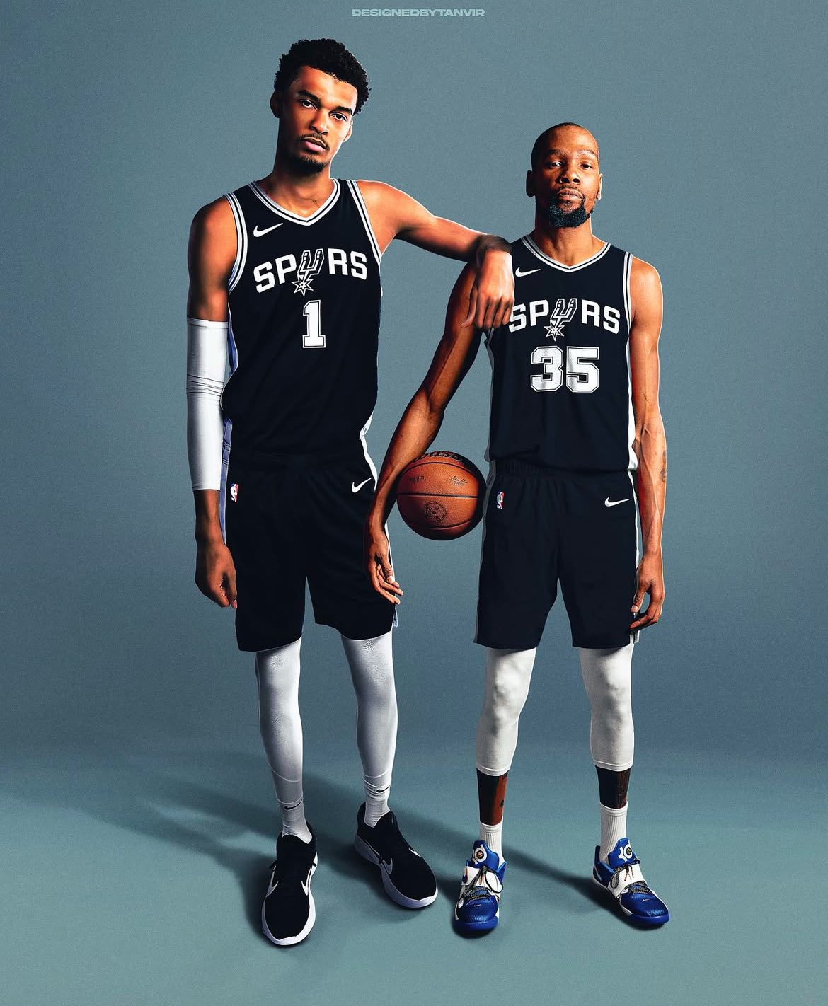 虎撲06月12日訊 Stunna999更新X,曬出一張馬刺球員維克托-文班亞馬和太陽(yáng)球員凱文-杜蘭特的雙人合成照與球迷分享。