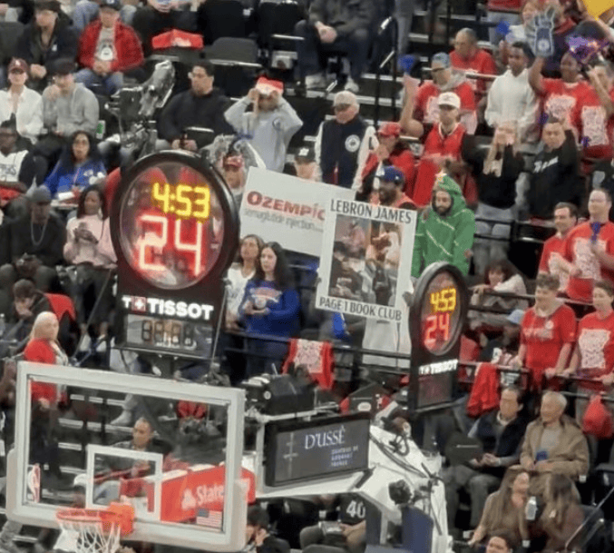快船記者Joey Linn曬出,板快標(biāo)語在快船主場,船主場有球迷手舉標(biāo)語:詹姆斯“只讀首頁”讀書會。球迷