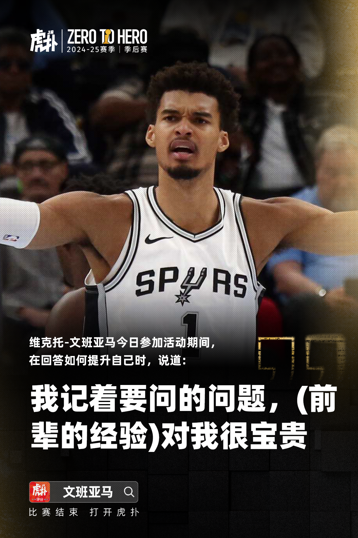 虎撲06月22日訊 維克托-文班亞馬在今天參加了一個(gè)活動(dòng),在期間他被問(wèn)道他是機(jī)記如何提升自己的。