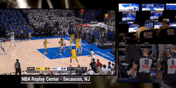 第四節(jié)比賽中,頓點哈利伯頓點板出界后吹罰步行者球權(quán),界后雷霆挑戰(zhàn)成功拿回球權(quán)。吹罰