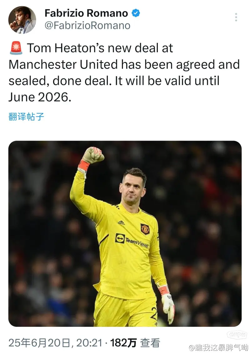 來自羅馬諾的報道:湯姆希頓已經與曼聯(lián)簽訂新協(xié)議至2026年6月。