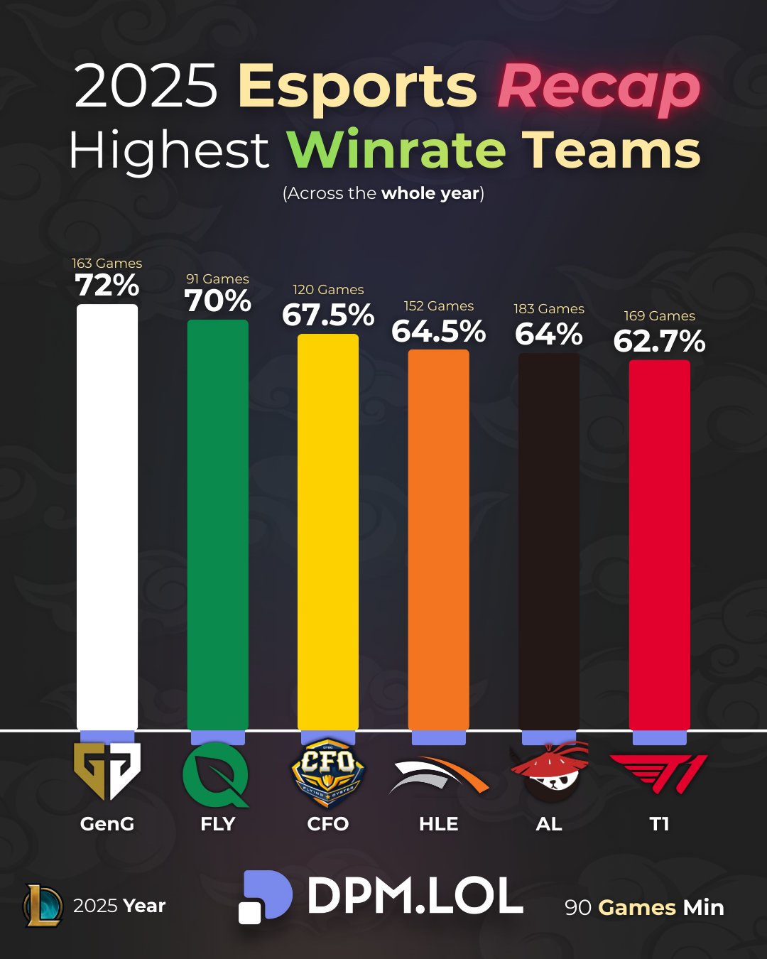 虎撲12月21日訊 今日外媒統計2025戰(zhàn)隊勝率排行,具體如下: