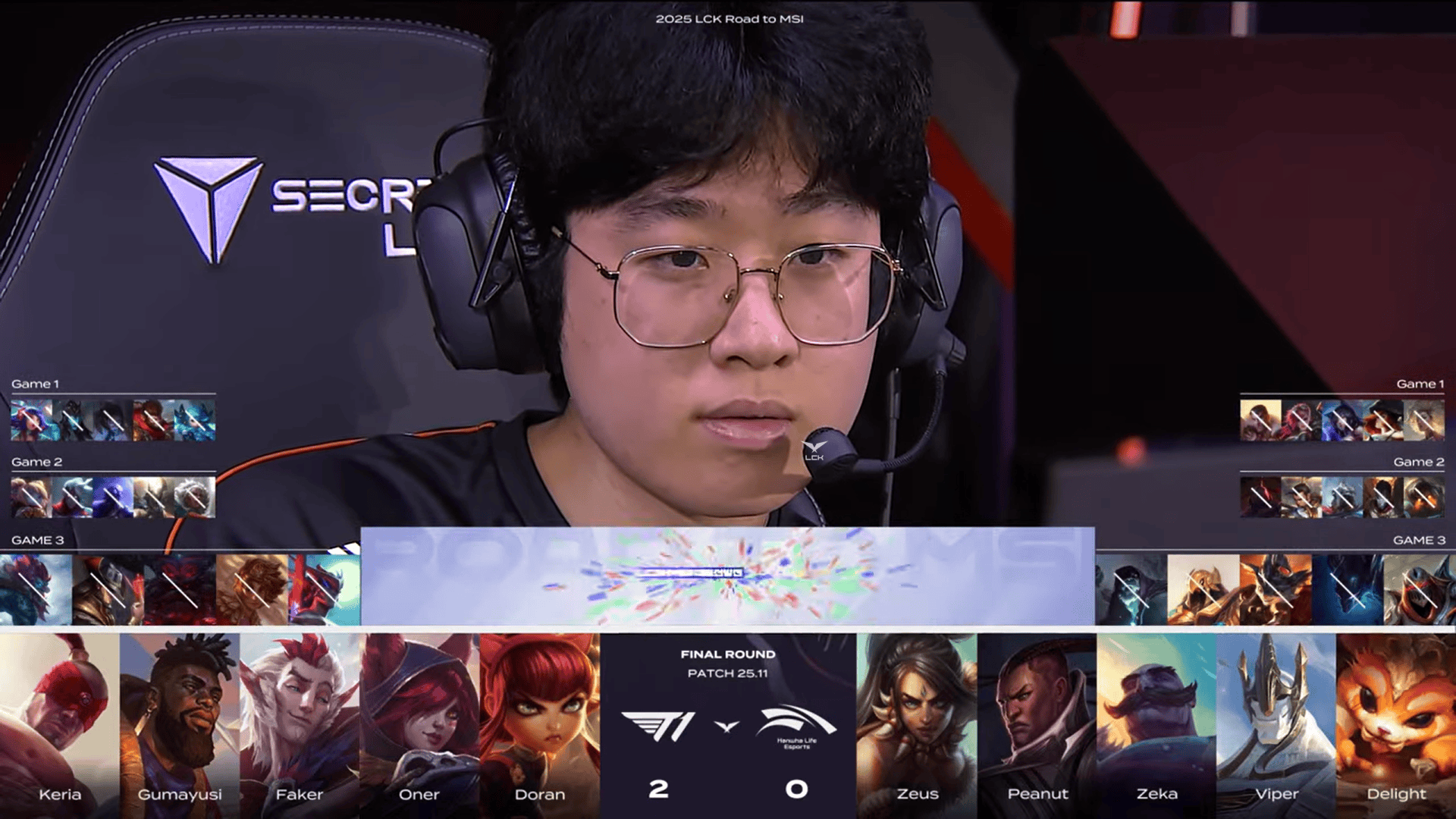 T?1選用:Doran奎桑提、Oner盲僧、Faker安妮、Gumayusi霞、Keria洛
