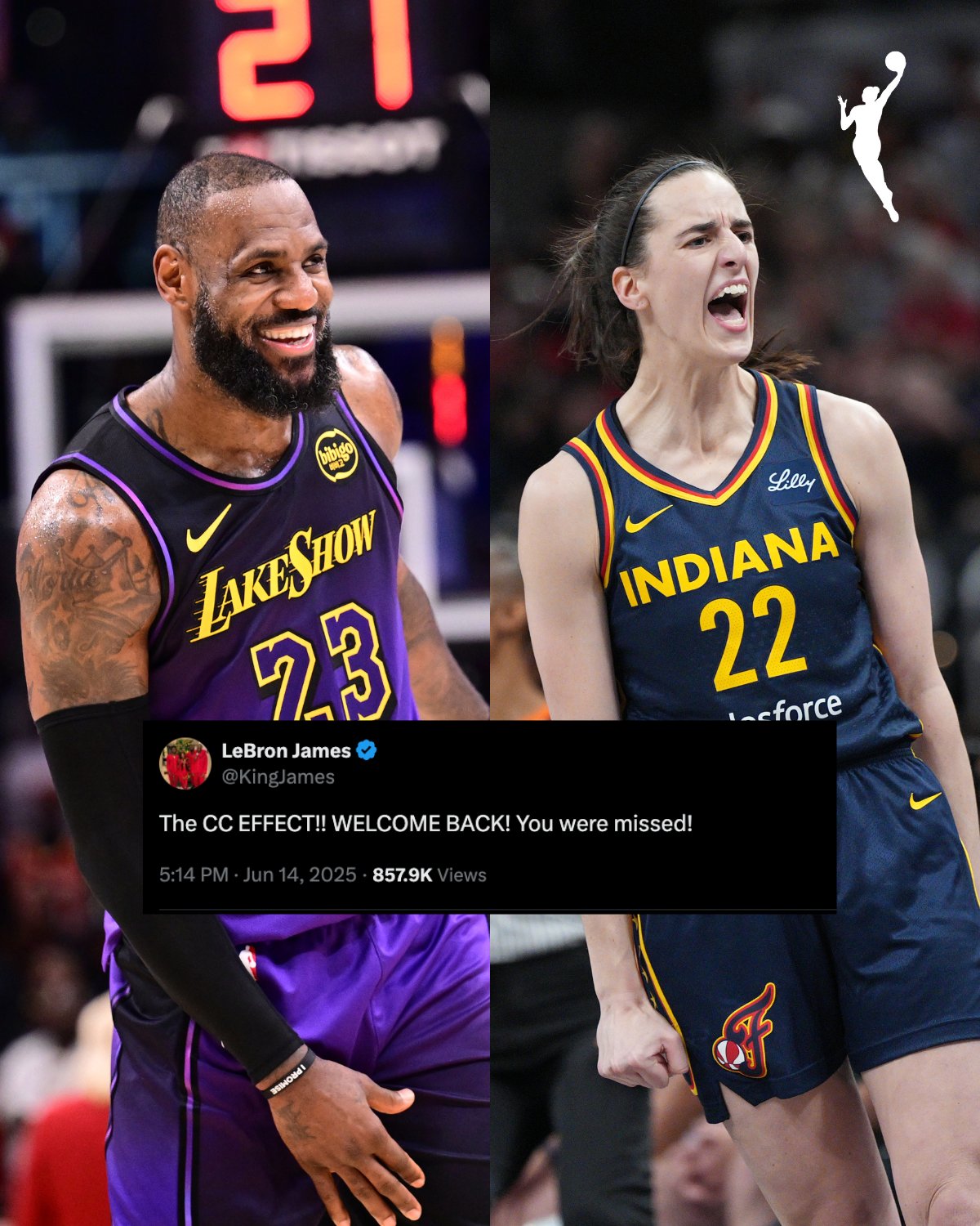 湖人前鋒勒布朗-詹姆斯賽后發(fā)推:“凱特琳-克拉克效應回來了!大家都很想念你!”