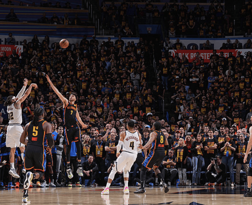 虎撲05月06日訊 今天NBA季后賽掘金客場對陣?yán)做谋荣愐呀?jīng)結(jié)束。全場戰(zhàn)罷,掘金以(1)121-119(0)戰(zhàn)勝雷霆。