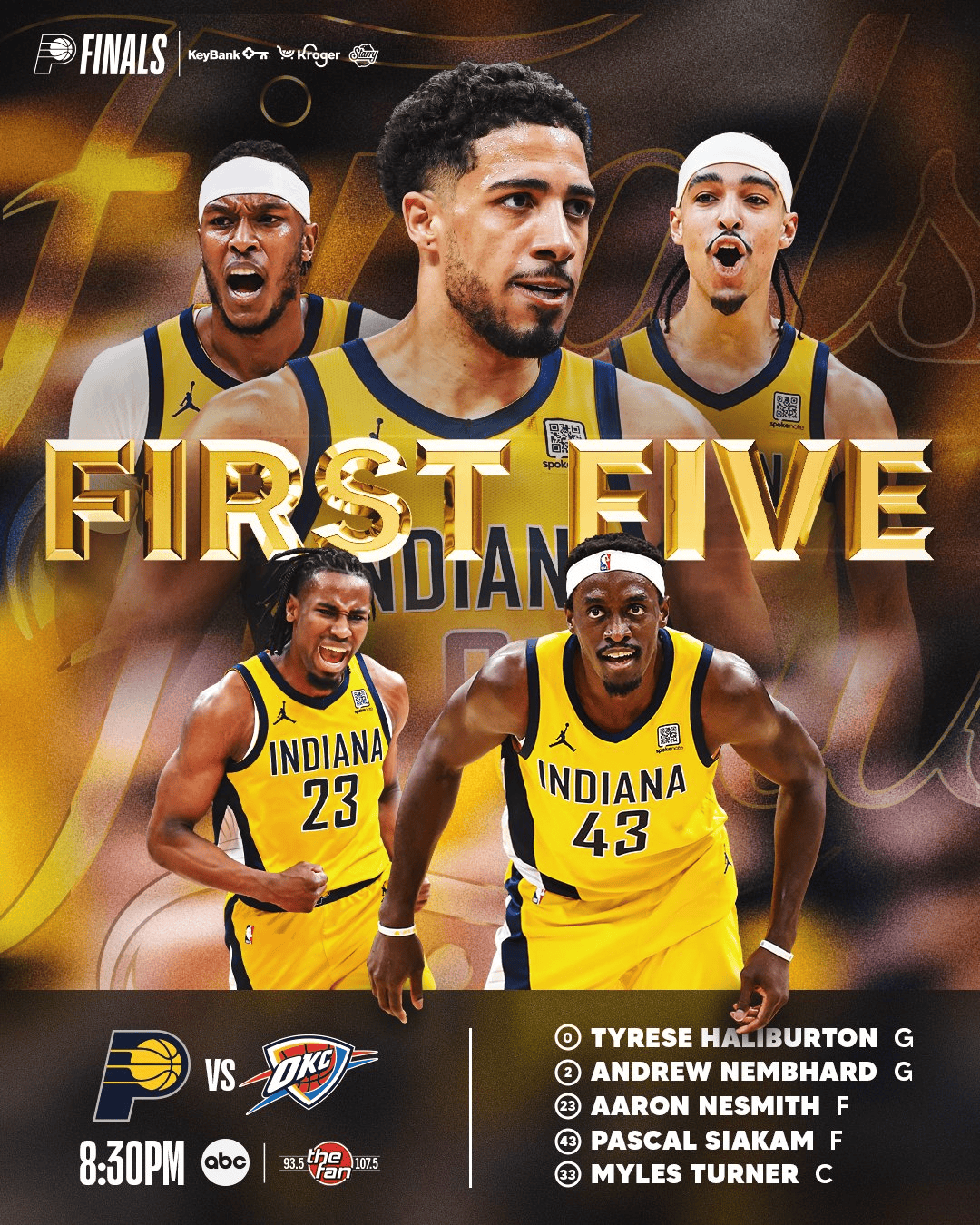 虎撲06月20日訊 步行者官方更新X,公布了球隊今日的板步首發(fā)陣容。