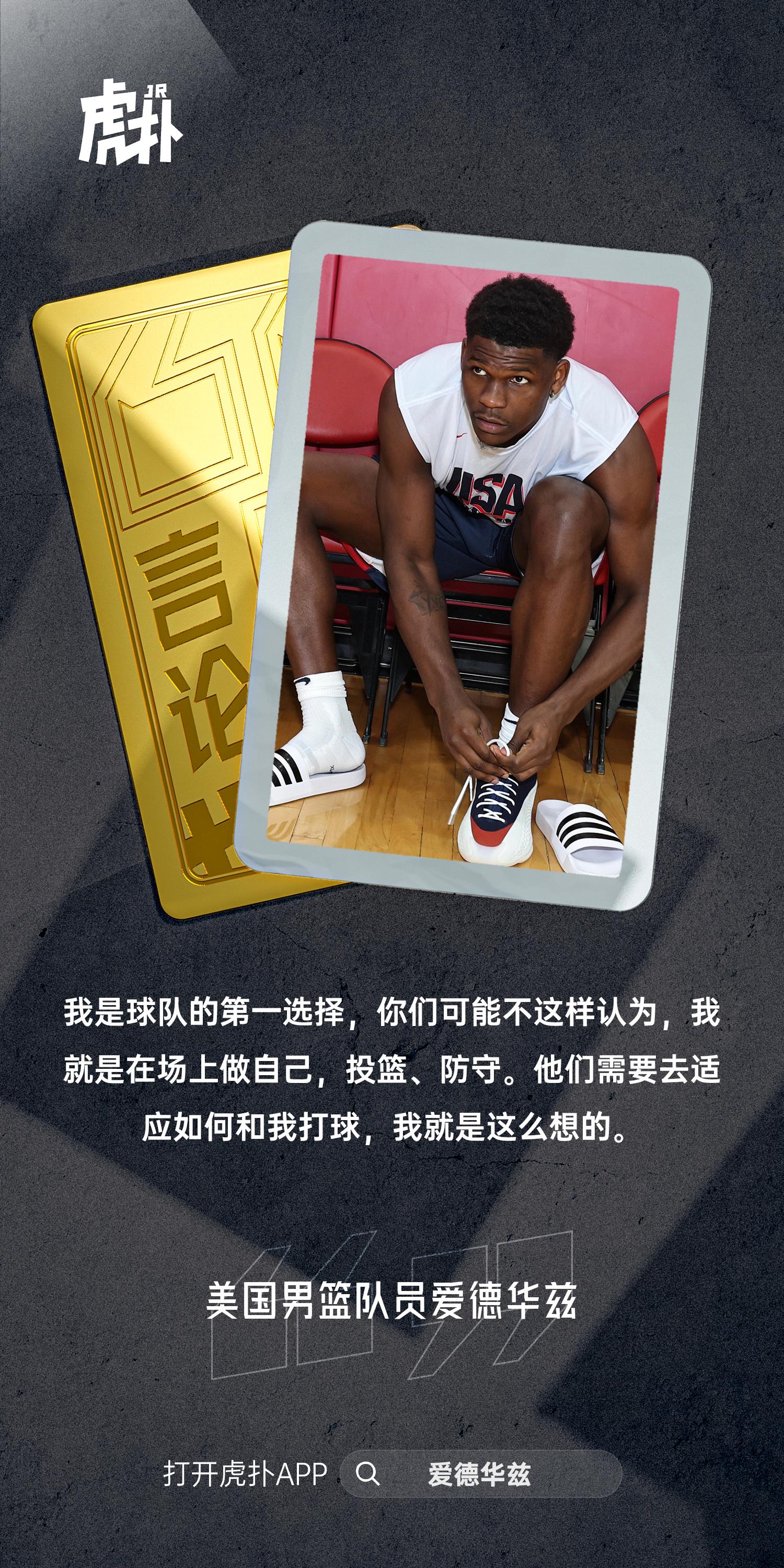 虎撲07月08日訊 森林狼球員愛(ài)德華茲在今天接受了采訪,談到了自己在美國(guó)隊(duì)的需適角色。