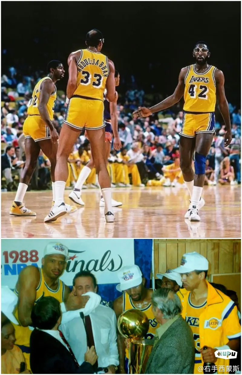 那么今天來辟謠所謂“詹姆斯是報團鼻祖”的言論。在60年代,湖人從76人搞來了32歲的張伯倫,與輿論不同,32歲的張伯倫還沒有那么多人說的“老到不堪入目”,同隊三巨頭之一貝勒此時已經34歲并且是同時代的小前鋒代表,此外還有隊魂LOGO男杰里韋斯特30歲,三個人常規(guī)賽表現(xiàn)華麗,而且是總決賽最高得分得主還是季后賽50+Points排第二第三的得主,不同于現(xiàn)在人們喜歡謾罵攻擊球星的聯(lián)手,當時人們對這三個人的聯(lián)手很是驚喜,不過可惜未能奪冠。說到這里估計有人要辯駁:“沒奪冠的聯(lián)手,配不上巨頭的稱號”,那么看下一組,同樣在湖人的:約翰遜、沃西、賈巴爾,這三人就是大名鼎鼎的Showtime-Lakers ,三人聯(lián)手后賈巴爾的天勾、魔術師的組織進攻,沃西的快速進攻能力為湖人在85年、87年、88年帶來了三個總冠軍,這可以打臉那些“不奪冠,不配巨頭”的言論。