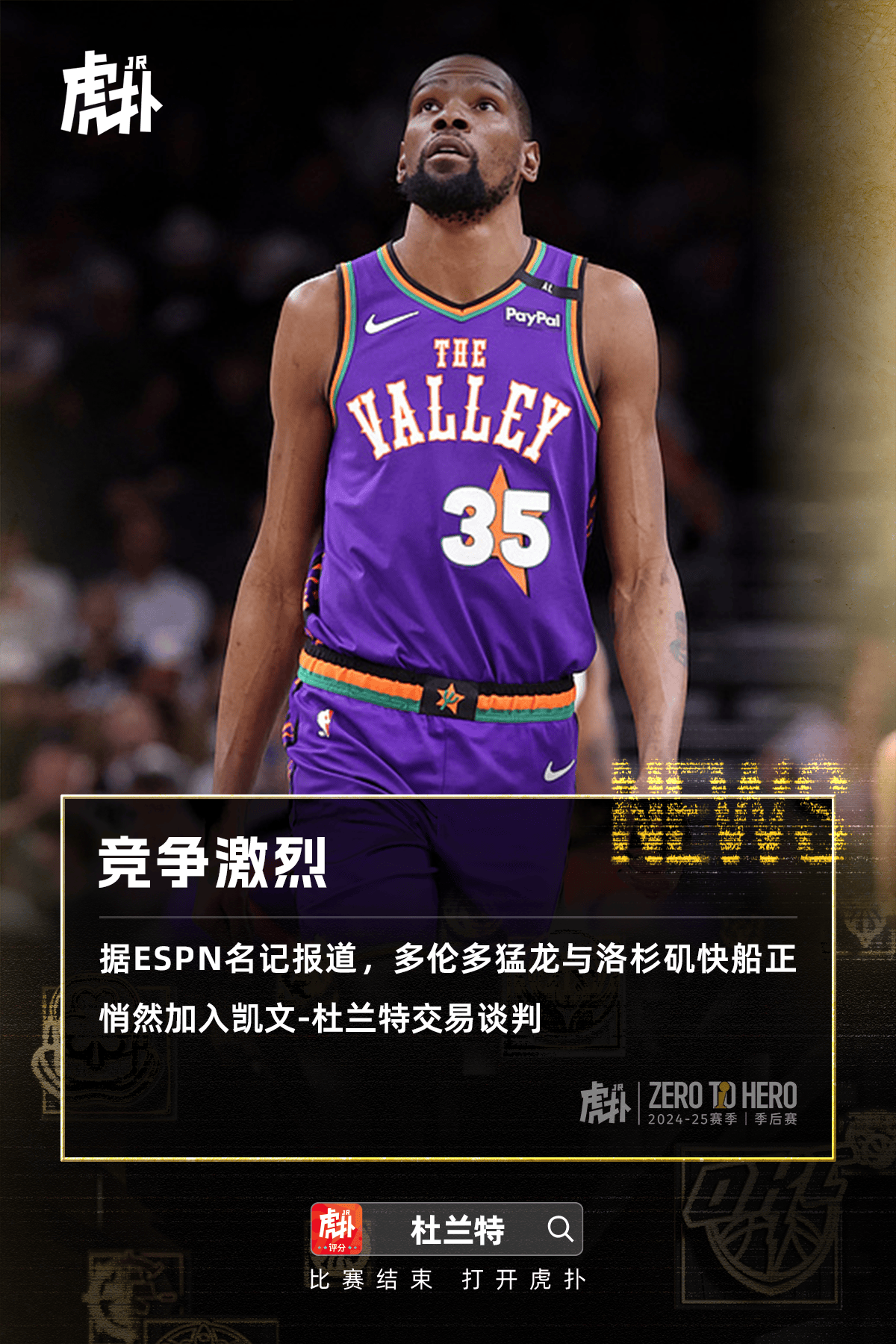虎撲06月16日訊 美媒NBA Central更新動(dòng)態(tài),據(jù)ESPN名記Brian Windhorst報(bào)道,格局多倫多猛龍與洛杉磯快船正悄然加入凱文-杜蘭特交易談判。再添