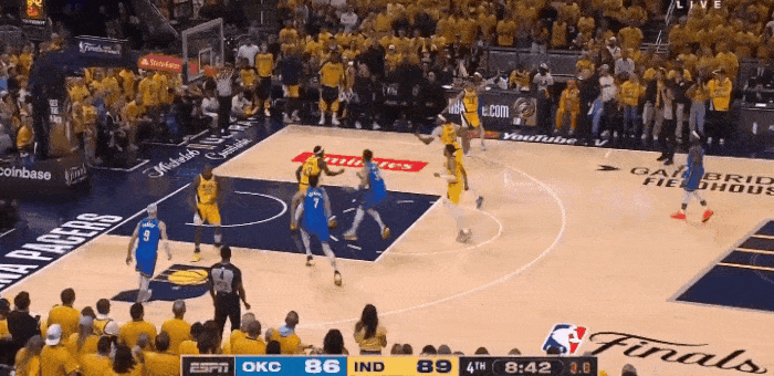 虎撲06月14日訊 NBA總決賽雷霆對(duì)步行者的第四場(chǎng)比賽正在進(jìn)行中。