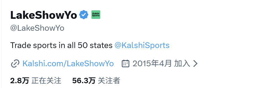 LakeShowYo擁有56.3萬的直接注銷粉絲。